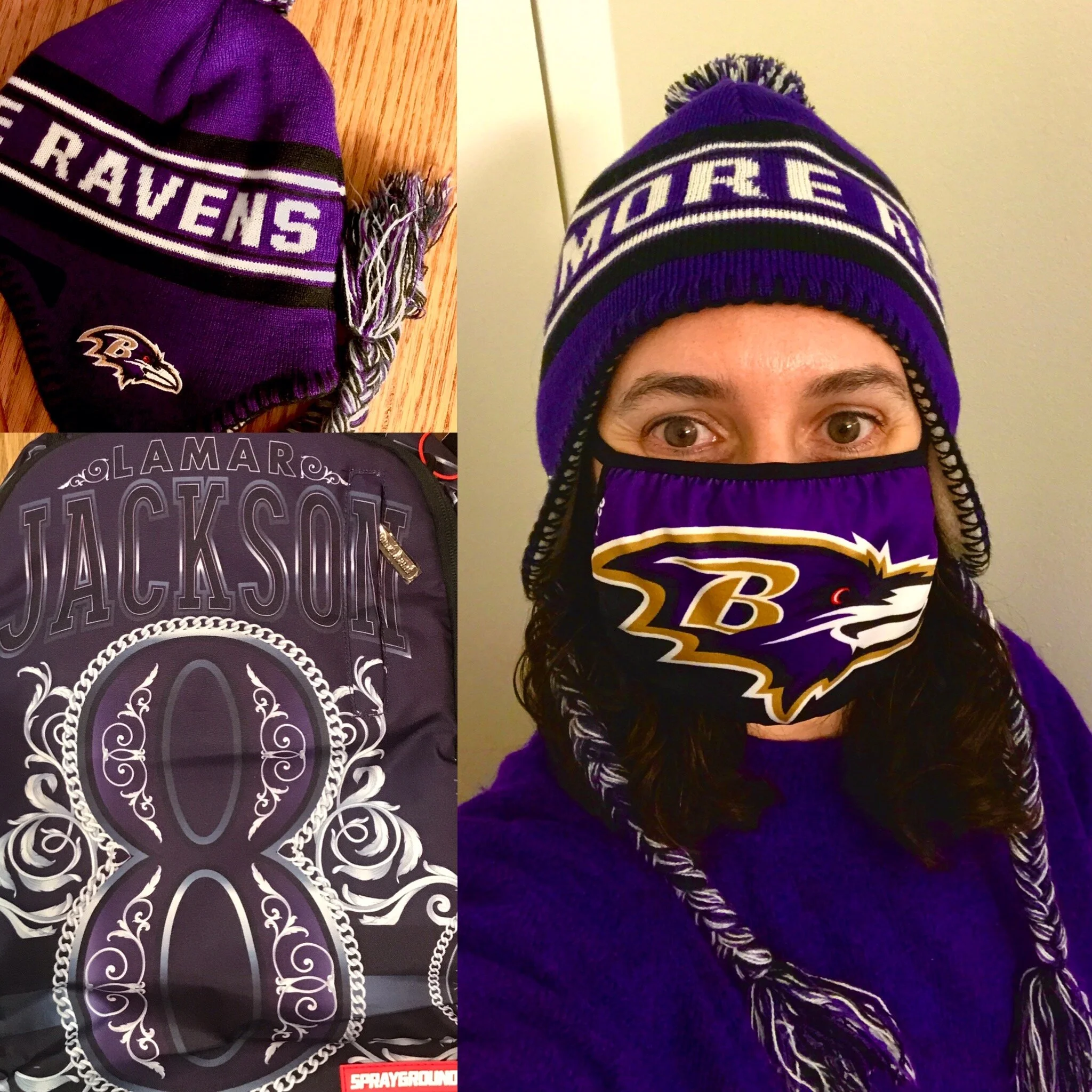 Mask: Fanatics.com, Jackson Backpack: Sprayground